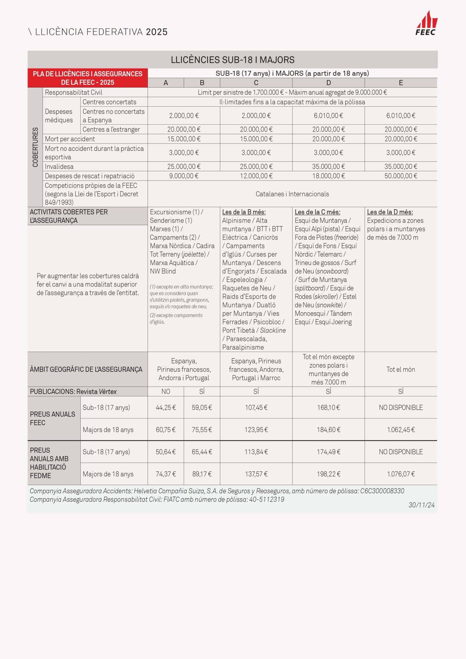 Al PDF trobareu la llista de modalitats amb la cobertura i preu de cada una.